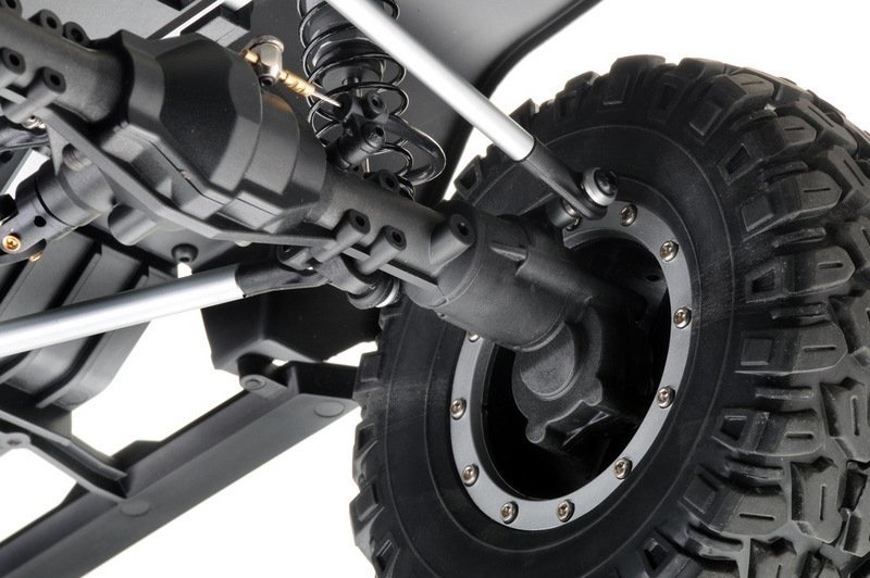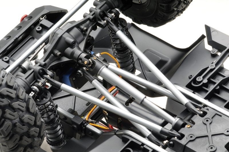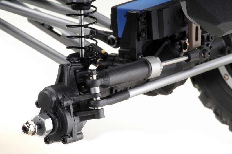 Unikátní konstrukce tlumiče řízení kombinovaná s 20kg digitálním a voděodolným servem řízení s hliníkovou pákou, umožňuje úhel natočení kol až 43°.