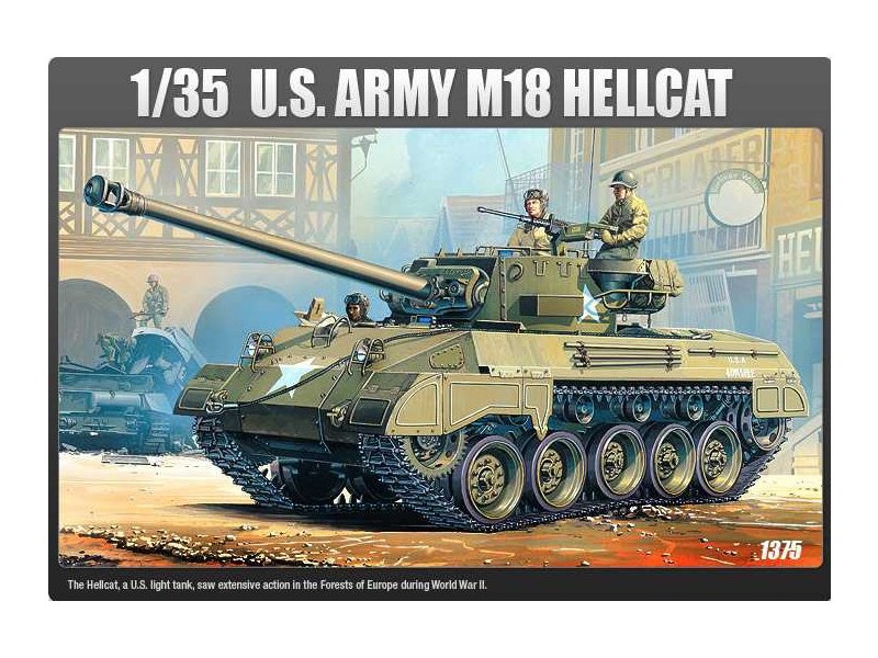 Academy plastikový model tanku Mauser M-18 Hellcat US ARMYl v měřítku 1:35 ke slepení.