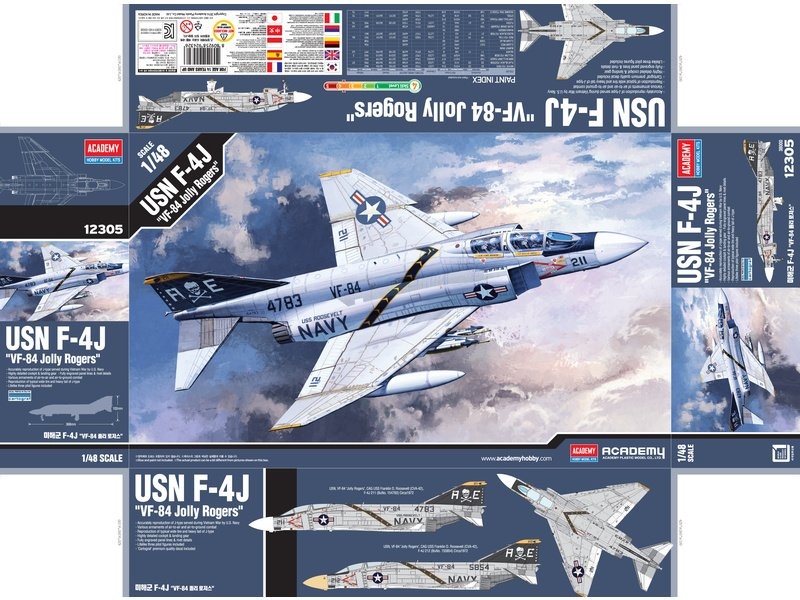 Academy plastikový model letadla McDonnell F-4J VF-84 Jolly ROgers v měřítku 1:48 ke slepení. Obtížnost 4, span 244 mm. Více informací