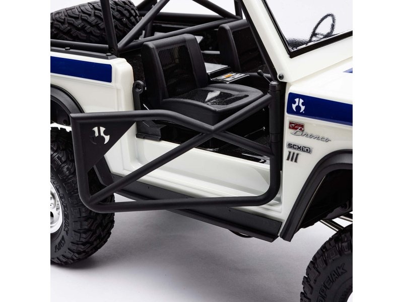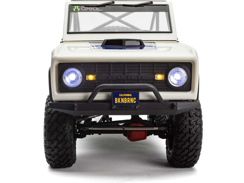 Při vývoji oficiálně licencovaného modelu SCX10™ III Early Ford Bronco 4WD, posunuli inženýři společnosti Axial® hranice v oblasti funkcí a výkonu zase dál. Jde se o jeden z nejpodrobněji zpracovaných modelů, které Axial® kdy vyrobil, a je ideální volbou pro nové i zkušené nadšence crawlerů. Realismus modelu je bezprecedentní a udělá jistě radost všem fanouškům značky Ford. Hotová lexanová karosérie Bronco má tvarovanou trubkovou klec s funkčními rámovými dvířky a skrytými úchyty karosérie, aby se zachovaly čisté linie povrchu karosérie. Mezi další autentické detaily exteriéru patří nasávání na kapotě, značka, stěrače čelního skla, LED světlomety a zadní světla. Přední a zadní nárazníky jsou umístěny v optimálním nájezdovém úhlu pro ničím nerušené lezení po skalách.