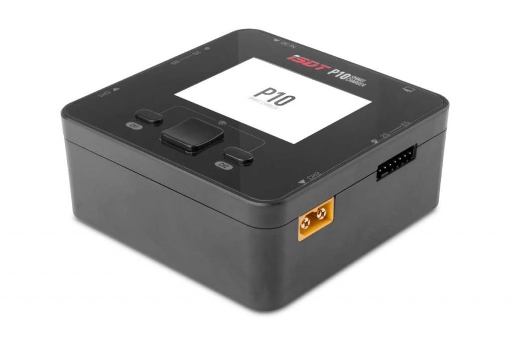 Miniaturní dvoukanálový nabíječ ISDT P10 2x250W je inteligentní nabíječ s napájením z autobaterie nebo stabilizovaného síťového zdroje a velmi jednoduchou a přehlednou obsluhou. P10 umožňuje nabíjet běžné typy článků (NiCd, NiMH, LiPo, LiHV, ULiHV, Li-ion, LiFe, Pb), navíc je vybaven vestavěnými šestikanálovými balancery, které zajišťují bezpečné nabíjení lithiových akumulátorů. Nabíječ je vybaven barevným LCD displejem a programovacími tlačítky, které vám poskytnou možnost komfortního a velice přehledného nastavování parametrů, řízení a sledování průběhu nabíjení.