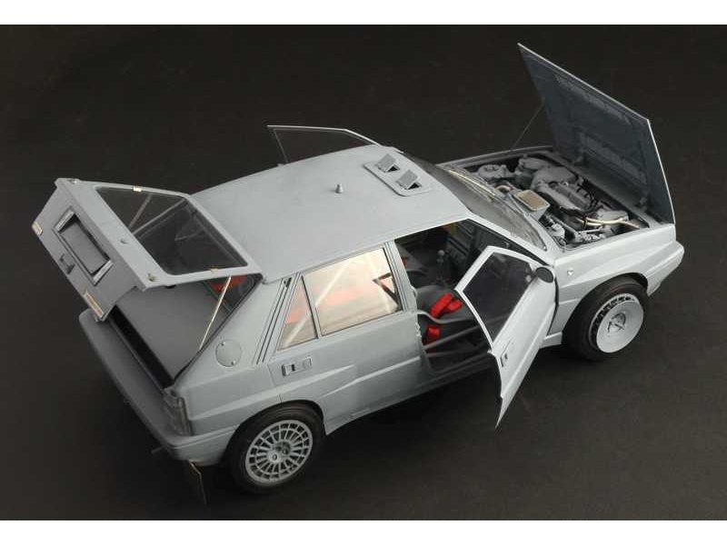 Plastikový model Italeri 4709 – legendární auta Lancia Delta HF Integrale v měřítku 1:12 ke slepení. Nové detailní formy, model má délku 326 mm, stavební obtížnost 5.