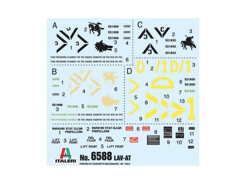 Plastikový model Italeri 6588 – obrněný transportér LAV-25 AT v měřítku 1:35 ke slepení. Měřítko 1:35, délka 178 mm, obtížnost 3. Balení obsahuje obtisky pro 4 verze.