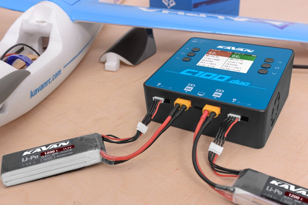 Malý dvoukanálový nabíječ KAVAN C100 Duo 2x500W byl konstruován se snahou nabídnout inteligentní nabíječ s vysokým výkonem s napájením ze sítě i autobaterie a velmi jednoduchou a přehlednou obsluhou. C100 Duo umožňuje nabíjet a vybíjet běžné typy článků (NiCd, NiMH, LiPo, LiHV, ULiHV, Li-ion, LiFe, Pb), navíc je vybaven vestavěnými šestikanálovými balancery, které zajišťují bezpečné nabíjení lithiových akumulátorů. Nabíječ je vybaven barevným LCD displejem a programovacími tlačítky, které vám poskytnou možnost komfortního a velice přehledného nastavování parametrů, řízení a sledování průběhu nabíjení/vybíjení. Mezi volitelnými jazyky menu samozřejmě nechybí ani čeština.