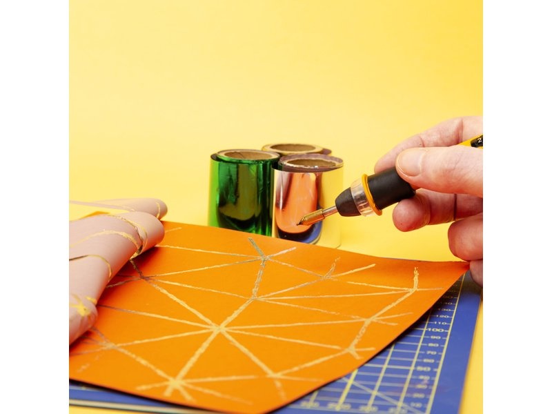 Sada 6 nažehlovacích kovových fólie pro výtvarné či modeláře práce. Součástí je USB pero se 4 koncovkami pro nažehlení fólie. Snadné vytváření působivých dekorací. Více informací