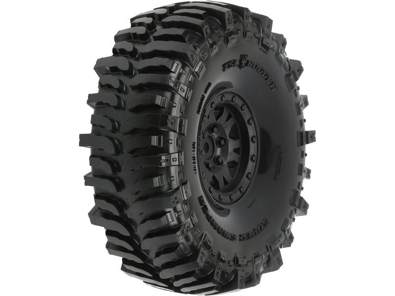 Kompletní kola Pro-Line pro RC modely aut 1:10, Crawler, expediční. Rozměr ⌀140x49 mm. Paprskový disk Impulse má černou barvu. Pneumatiky Interco Bogger G8 1.9", tvrdost směsi G8 (měkká). Unašeč je šestihran 12 mm. Více informací