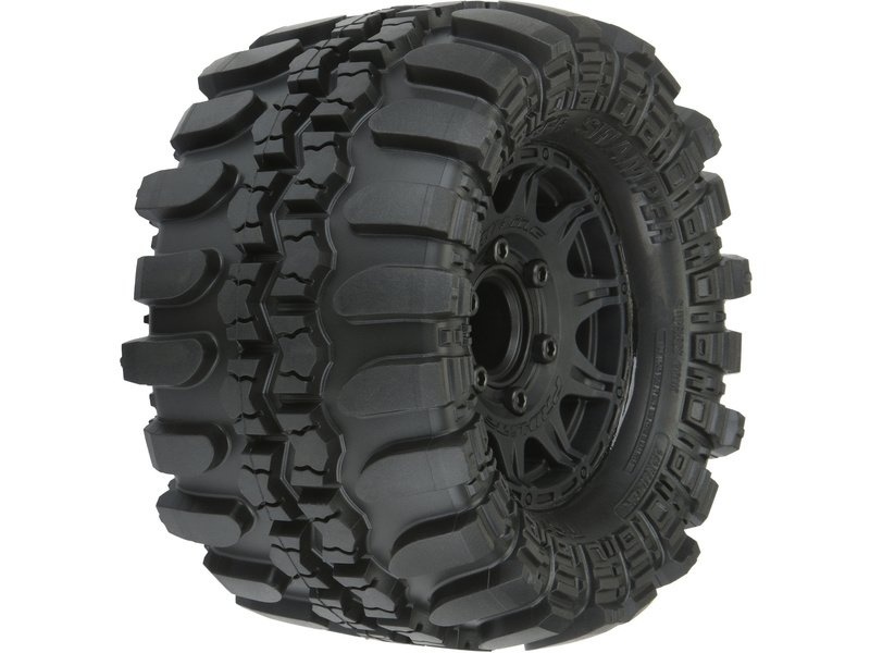 Kompletní kola Pro-Line pro RC modely aut 1:10. Rozměr ⌀127x74 mm. Paprskový disk Raid má černou barvu. Pneumatiky Interco 2,8" TSL SX Super Swamper, tvrdost směsi M2 - střední. Unašeč je šestihran 12 mm (vyměnitelný adaptér).