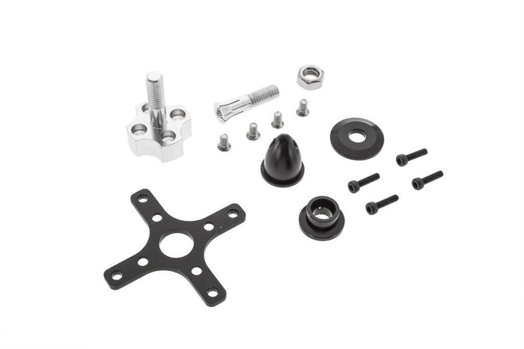 Sada pro zadní montáž s unašečem a upevňovacím křížem pro motory RAY G2 C3542 a C3548 (s hřídelí 5 mm). Obsahuje rovněž kleštinový unašeč pro hřídel 5,0 mm/M6 s kuželovou maticí. Více informací
