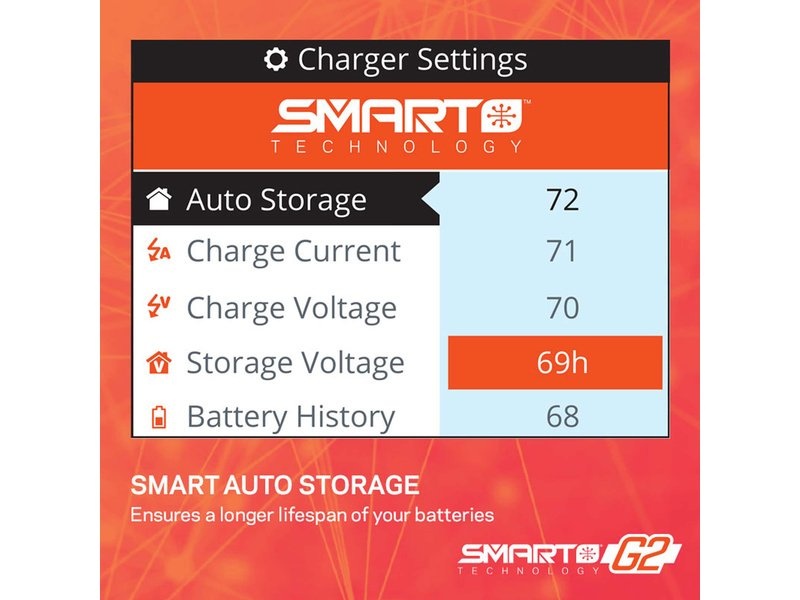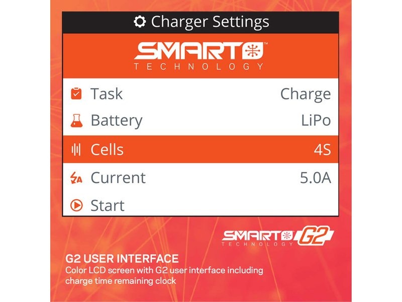 Aby bylo nabíjení co nejpohodlnější, má nabíječ Spektrum™ S155 Smart G2 AC barevný LCD displej s vylepšenými nabídkami, ikonami a navigačními nástroji. Jeho intuitivní rozhraní umožňuje uživatelům sledovat průběh nabíjení a snadno provádět změny nastavení. Hodiny na obrazovce ukazují zbývající dobu potřebnou na dobití akumulátoru.
