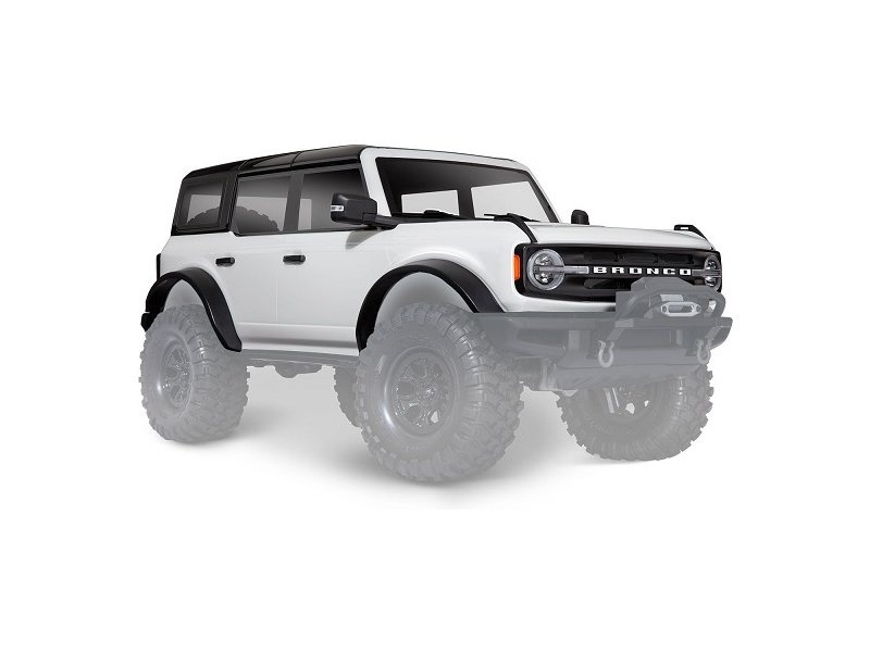 Traxxas karosérie Ford Bronco 2021 bílá - kompletní nabarvená. Úžasně vypadající moderní karoserie s množstvím detailů jako je přední mřížka chladiče, kliky dveří, zrcátka, rezervní kolo, apod. Určeno pro RC model Traxxas TRX-4 Ford Bronco 2021 nebo jiné modely TRX-4 s rozvorem 324 mm / konverzní sadou a s instalovanými blatníky pro bez-sponkové upínaní karoserie.