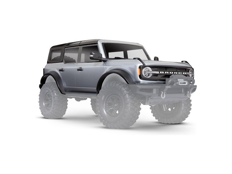 Traxxas karosérie Ford Bronco 2021 stříbrná - kompletní nabarvená. Úžasně vypadající moderní karoserie s množstvím detailů jako je přední mřížka chladiče, kliky dveří, zrcátka, rezervní kolo, apod. Určeno pro RC model Traxxas TRX-4 Ford Bronco 2021 nebo jiné modely TRX-4 s rozvorem 324 mm / konverzní sadou a s instalovanými blatníky pro bez-sponkové upínaní karoserie.