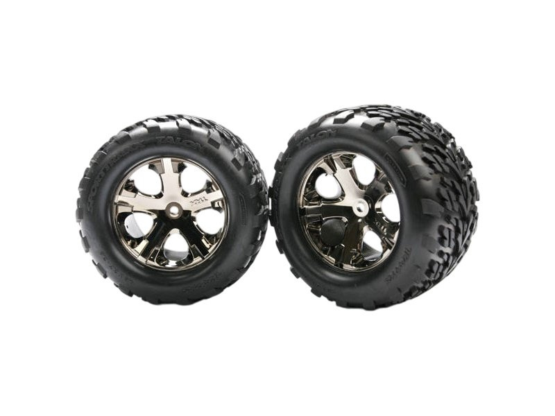 Kompletní kola pro RC modely aut. Disky Černý chrom All-Star s nalepenými pneumatikami Talon a vložkou.