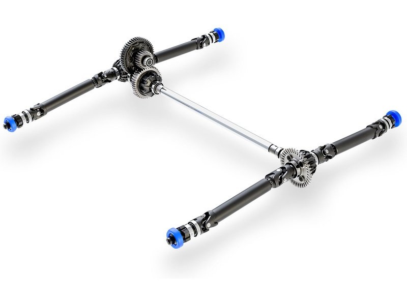 Odolnost je pro pohonný systém jednou z nejdůležitějších vlastností. Maxx si propůjčil osvědčené komponenty od větších modelů, což z něj dělá mimořádně odolný model. Pohonné ústrojí tvoří ocelová čelní kola, tří diferenciály s kovovými převody, které rovnoměrně distribuují výkon ke kolům, hliníková silnostěnná středová hřídel a robustní teleskopické poloosy. Rotační části jsou uloženy v kvalitních zapouzdřených ložiscích.