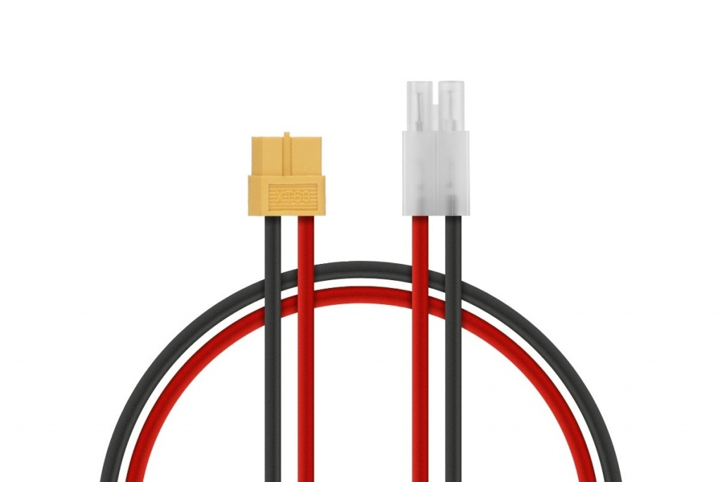 Nabíjecí kabel (reduce) pro nabíječky s výstupním konektorem XT60 k nabíjení akumulátorů s konektorem Tamiya Gold. Délka 25cm, 14AWG. Více informací