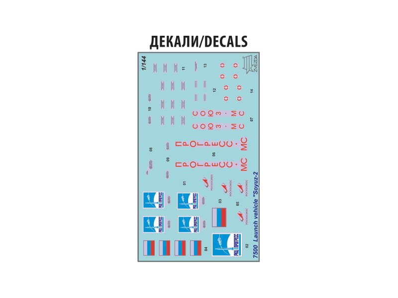 Zvezda plastikový model rakety Sojuz v měřítku 1:144 ke slepení. Stavebnice obsahuje 111 dílků, délka 355 mm. Více informací