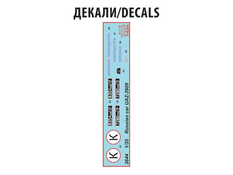 Plastikový model Zvezda 3644 - military UAZ 3909 v měřítku 1:35 ke slepení. Stavebnice obsahuje 197 dílků, délka 127 mm. Více informací